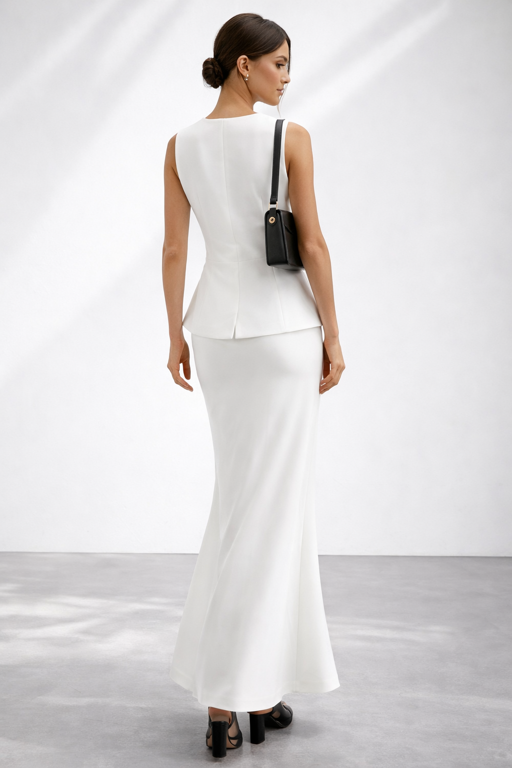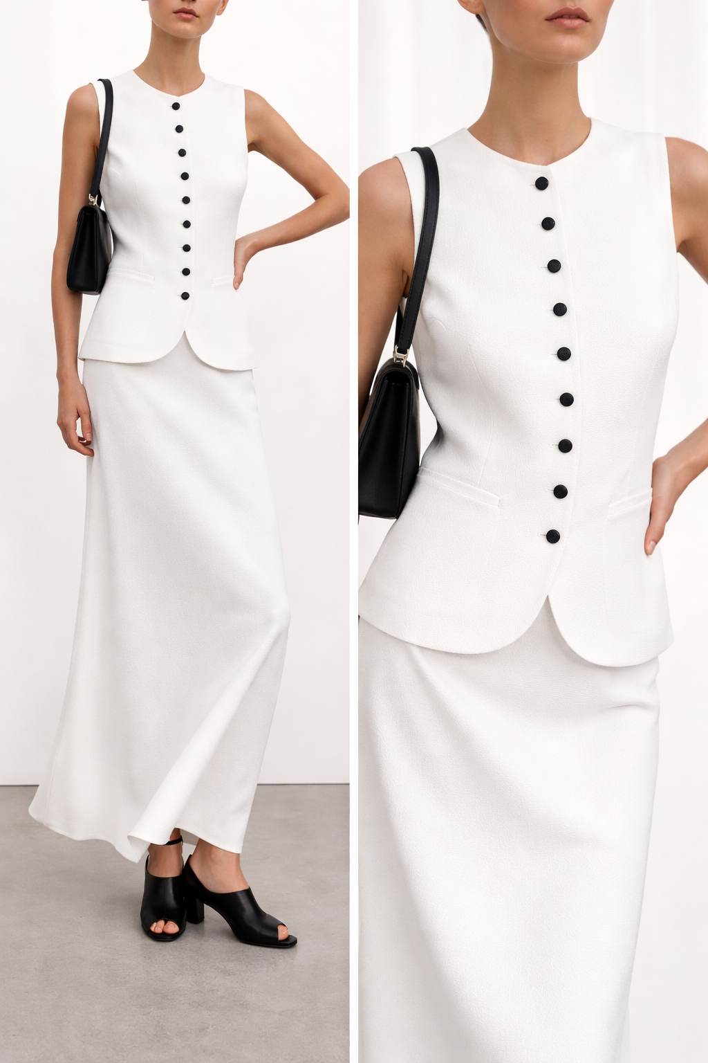 • Minimalist white skirt set lovers seeking quiet luxury Petite vest maxi set
