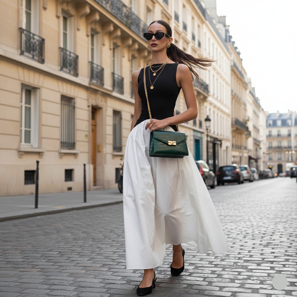 - If you’re stuck on footwear, slim heels sharpen it and loafers soften it both visually balance the skirt and solve what shoes with A-line maxi without killing the silhouette.