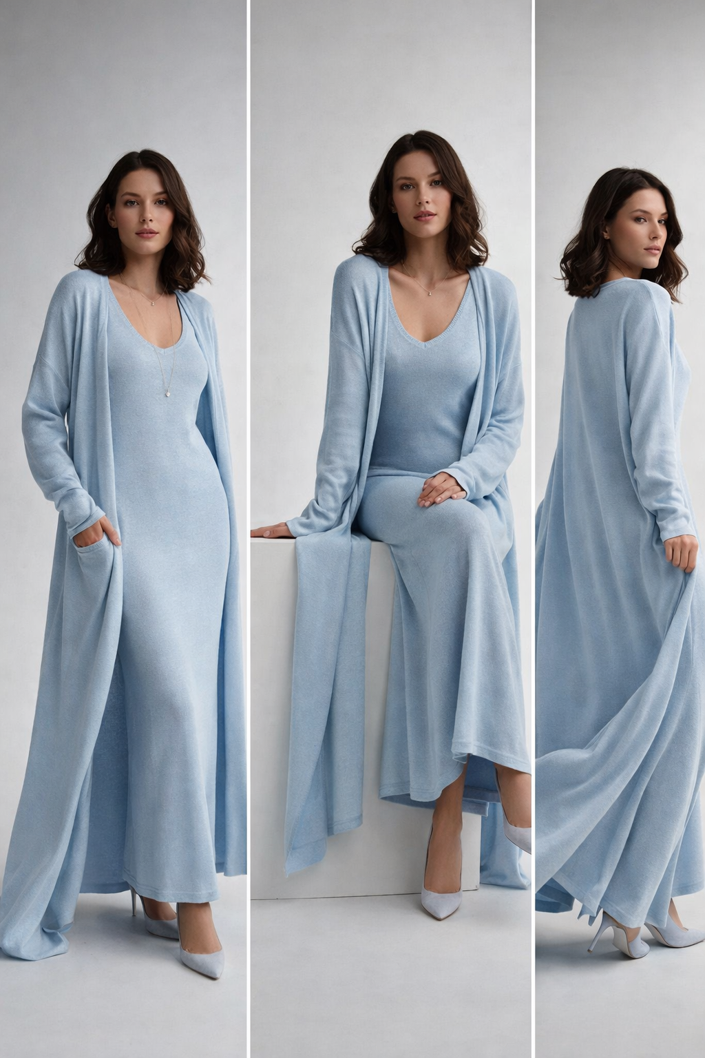 the kind of classy casual maxi look that works for real life, not just mirror selfies. And yes, this two piece maxi dress is the upgraded answer to fast-fashion knits. Our premium soft knit blend drapes cleanly and resists pilling, so you get a true two piece old money cardigan set feel without the scratchy compromise.