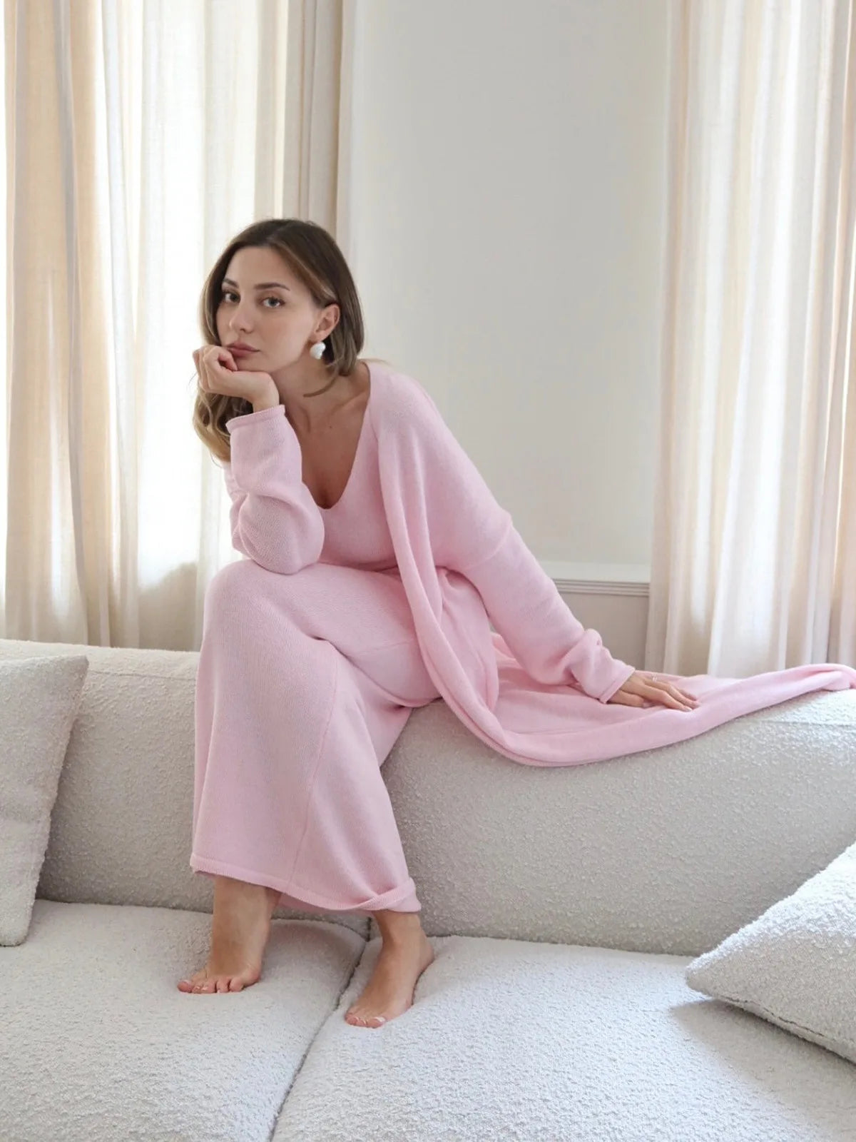 Photo-ready finish – Clean lines and fluid layers make it an Instagram worthy knit co-ord and a natural Pinterest knit set trends pick.