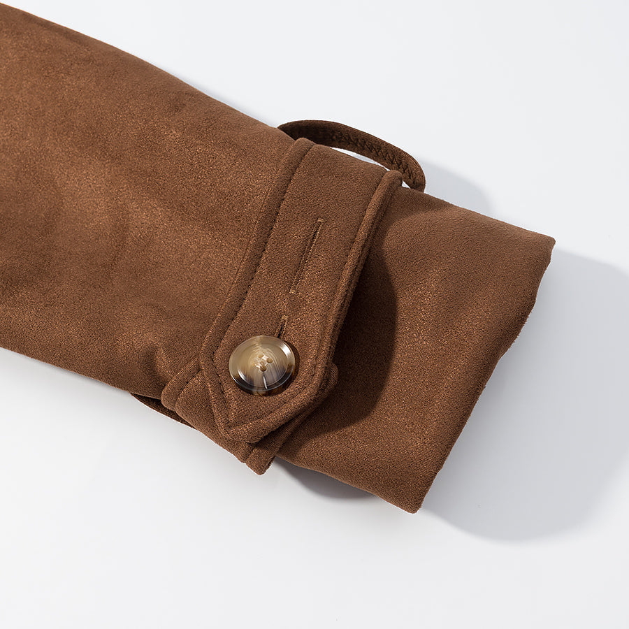 - Notched lapel collar: The notched lapel suede trench coat women adore for its elegant neckline and refined structure.