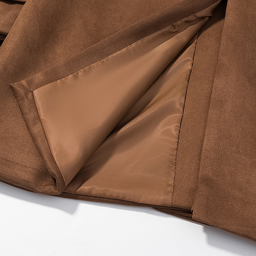 - Deep functional pockets: Because the soft suede trench coat with pockets should look chic and hold your phone.