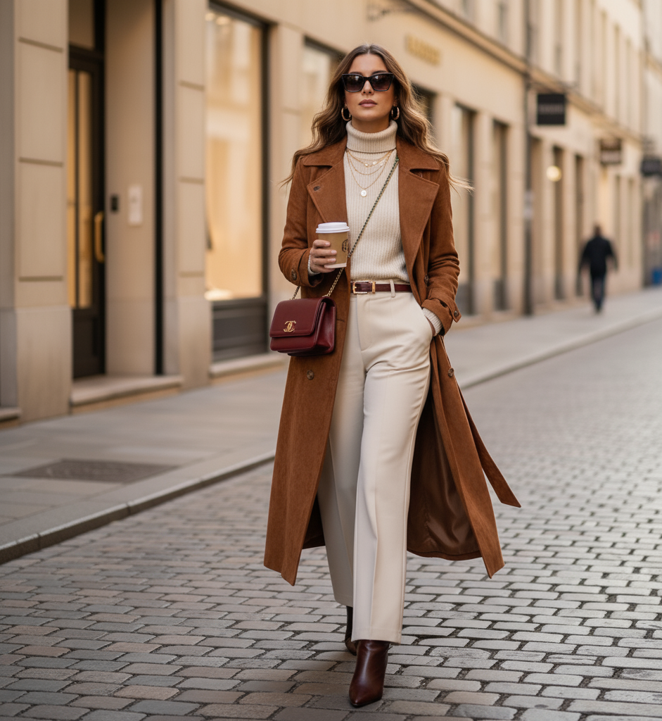 - Old Money Fall Outfit: Pair with a turtleneck, tailored trousers, and leather boots for the old money trench coat women aesthetic. Quiet, expensive, effortless.